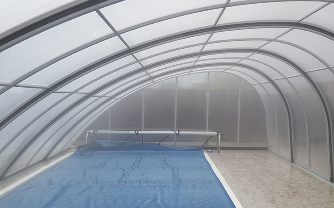 Павильон для бассейна ATOLL, накрывая бассейн, оставляет с одной стороны бассейна проход в полный рост. Элегантная мобильная защита для Вашего бассейна - это главная причина, по которой мы начали производство данного типа павильона. Выбрав представленный тип павильона, Вы не потеряете благородный вид сада и окрестностей, при этом сможете свободно пользоваться Вашим бассейном с трёх сторон, даже когда он будет закрыт павильоном .